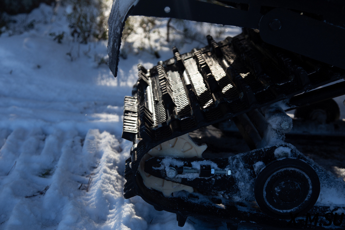 Его эргономичная подвеска придает максимальную плавность хода, а экономичный 4-х тактный двигатель обеспечивает длительную эксплуатацию без дозаправки. Конструкция задней подвески позволяет достичь максимального сцепления с поверхностью даже при буксировке тяжелых грузов, а мощная рама и усиленный фаркоп позволят тянуть несколько саней, общей массой до 600кг.